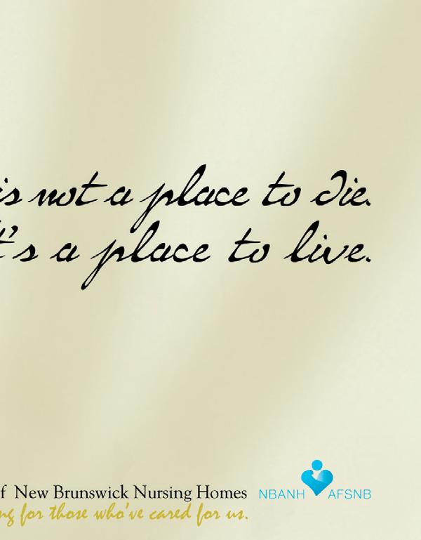 The New Brunswick Association of Nursing Homes is an association that represents all of the 62 not for profit nursing homes in the province. Our mandate is to provide our residents with an environment in which they can live with respect and dignity and we are proud of the work that we achieve each and every day. From the Board of Directors who lead the Association to the staff who dedicate themselves to the task each day, all work in unison to make our nursing homes a place where it is nice to live and where our residents are well cared for and respected.