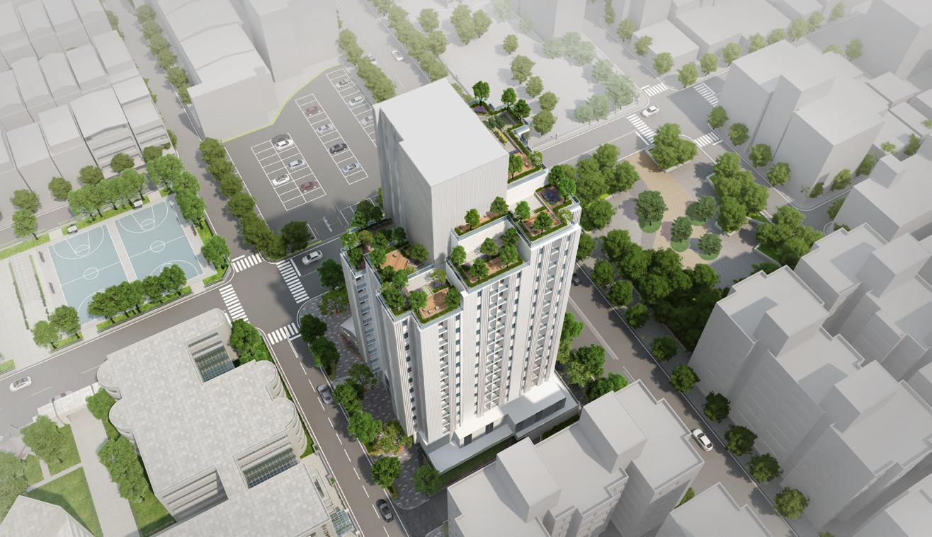 The private residential building offers a variety of floor plans and apartment types, catering to both single individuals and larger families. Additionally, the greenery terrace rooftop serves as a public space open to all residents.