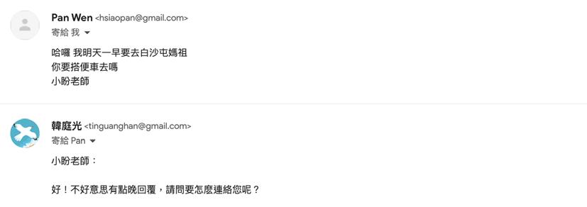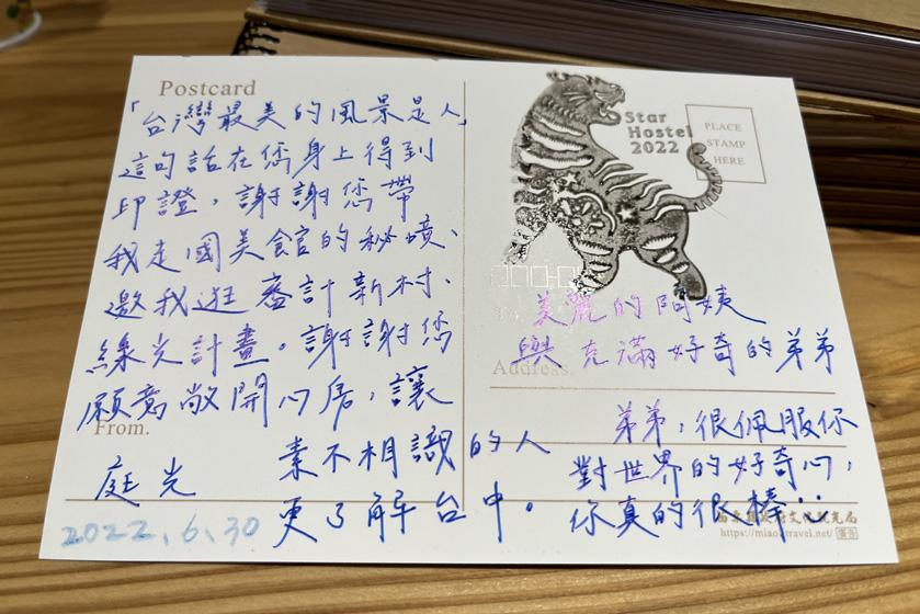 「雖然我回應你的時候,你的旅途已經結束了, 我們也在你旅途的前半段就遇到了,拿到名片 時也就稍微看了一下,沒有特別留意,但我還 是保留著你的名片,把他帶回臺北,心想閒暇