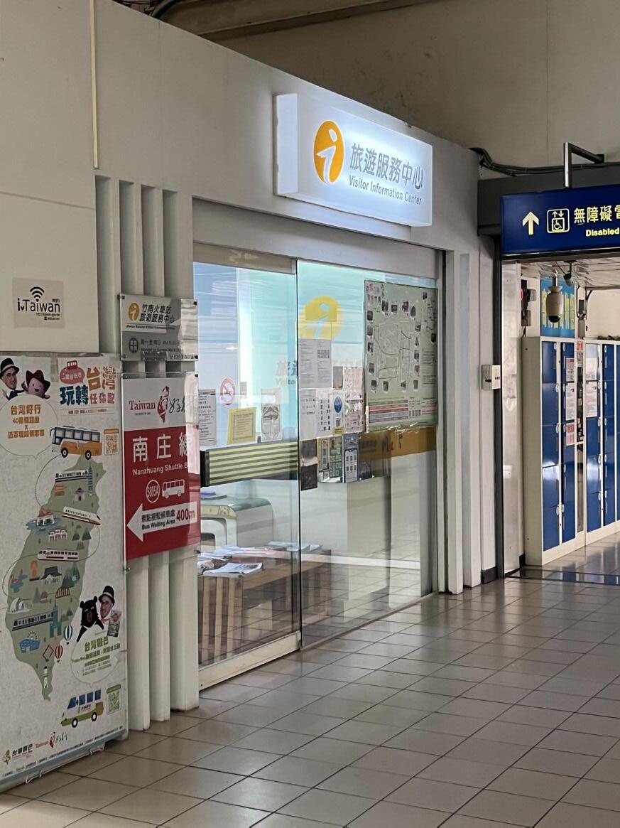 這位旅服人員是當地人,姓陳。「竹南以前被 劃為新竹郡,後來重新劃分,改歸苗栗。」她 指向地圖,比劃一番,「以前沿海要建車站, 當地居民反對,後來車站蓋在內陸,沿海就逐