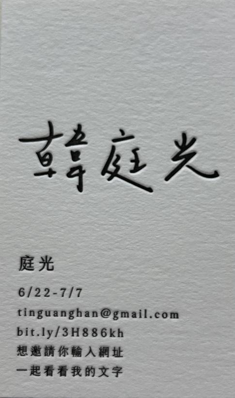 韓庭光 我喜歡寫作——尋找生活刮痕,爬梳腦中思緒,打造文字 工藝,我透過書寫叩問世界;我喜歡教育,能陪伴學生,甚至看見 他們的成長令人滿足;我喜歡發光的人,他們不必然有錢有權,但 擁有信念,並依循信念勇往直前。