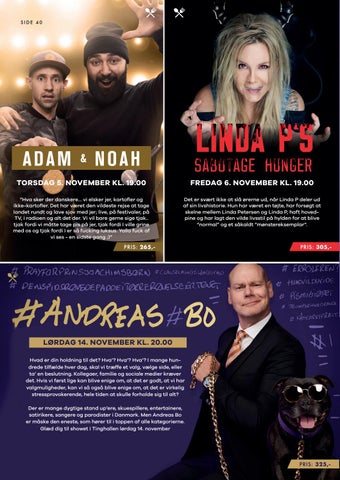 LØRDAG 14. NOVEMBER KL. 20.00 Hvad er din holdning til det? Hva’? Hva’? Hva’? I mange hundrede tilfælde hver dag, skal vi træffe et valg, vælge side, eller ta’ en beslutning. Kollegaer, familie og sociale medier kræver det. Hvis vi først lige kan blive enige om, at det er godt, at vi har valgmuligheder, kan vi så også blive enige om, at det er virkelig stressprovokerende, hele tiden at skulle forholde sig til alt? Der er mange dygtige stand up’ere, skuespillere, entertainere, satirikere, sangere og parodister i Danmark. Men Andreas Bo er måske den eneste, som hører til i toppen af alle kategorierne. Glæd dig til showet i Tinghallen lørdag 14. november