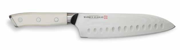 Ett 3-delat exklusivt knivset modern design med hög kvalitet, knivarna har ett vitt greppvänligt handtag. Setet innehåller en kockkniv 32cm japansk kockkniv 30cm samt en skalkniv 24cm. Markus Aujalays logo/tecken snyggt etsad/tryckt på bladet. Levereras en exklusiv present/färgkartong.