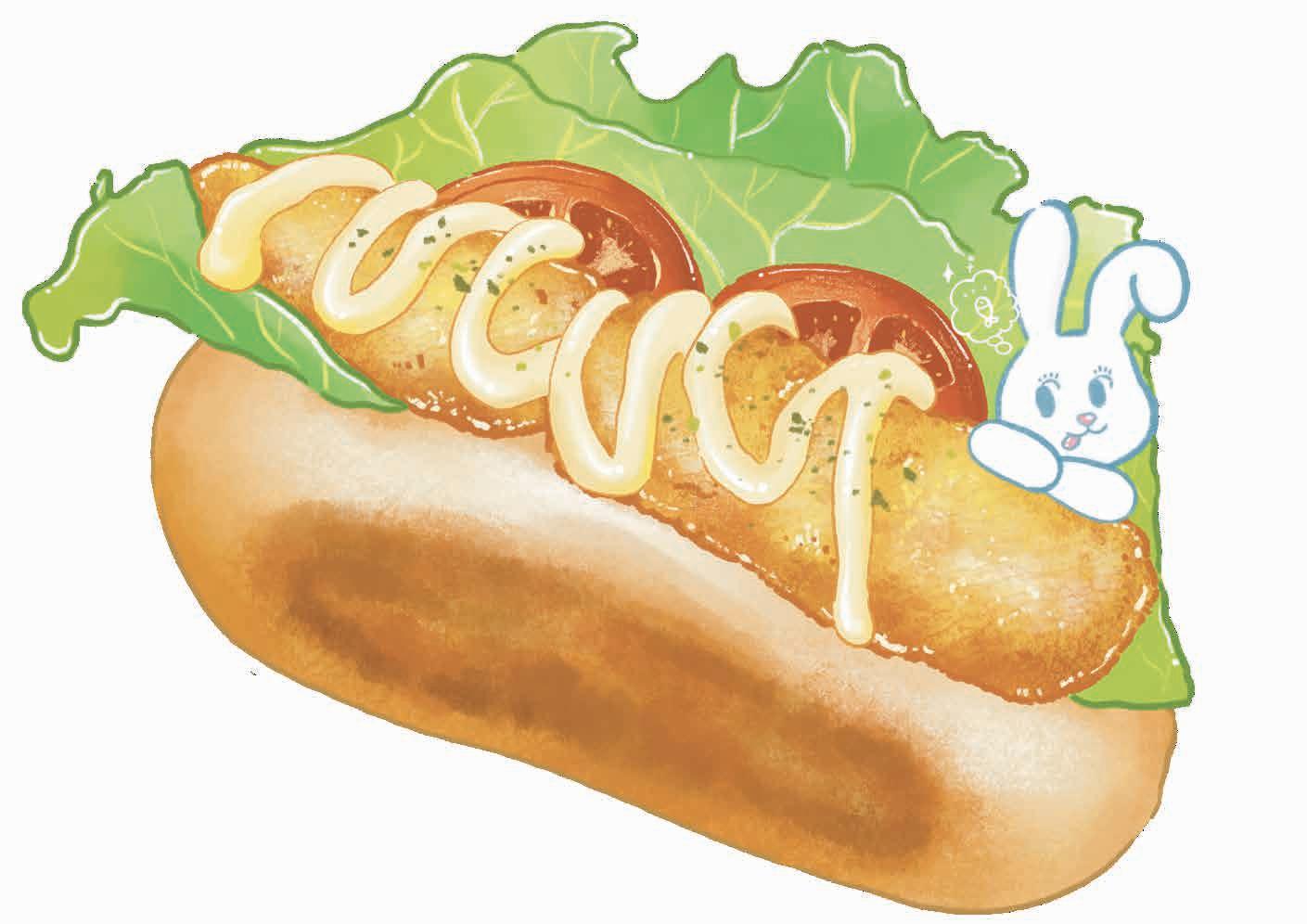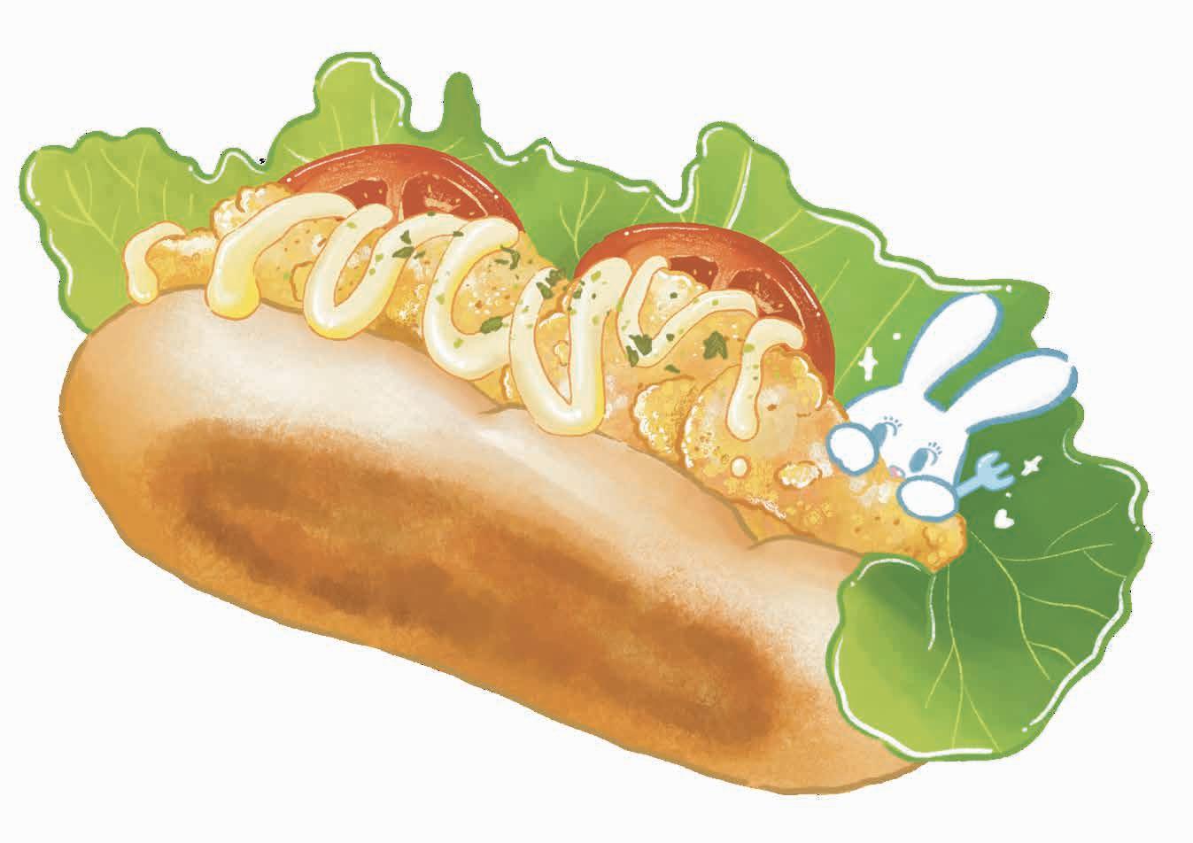 我所繪製的插畫,用於三明治店Facebook 的宣傳圖文以及印製於三明治裝飾的小旗 子。