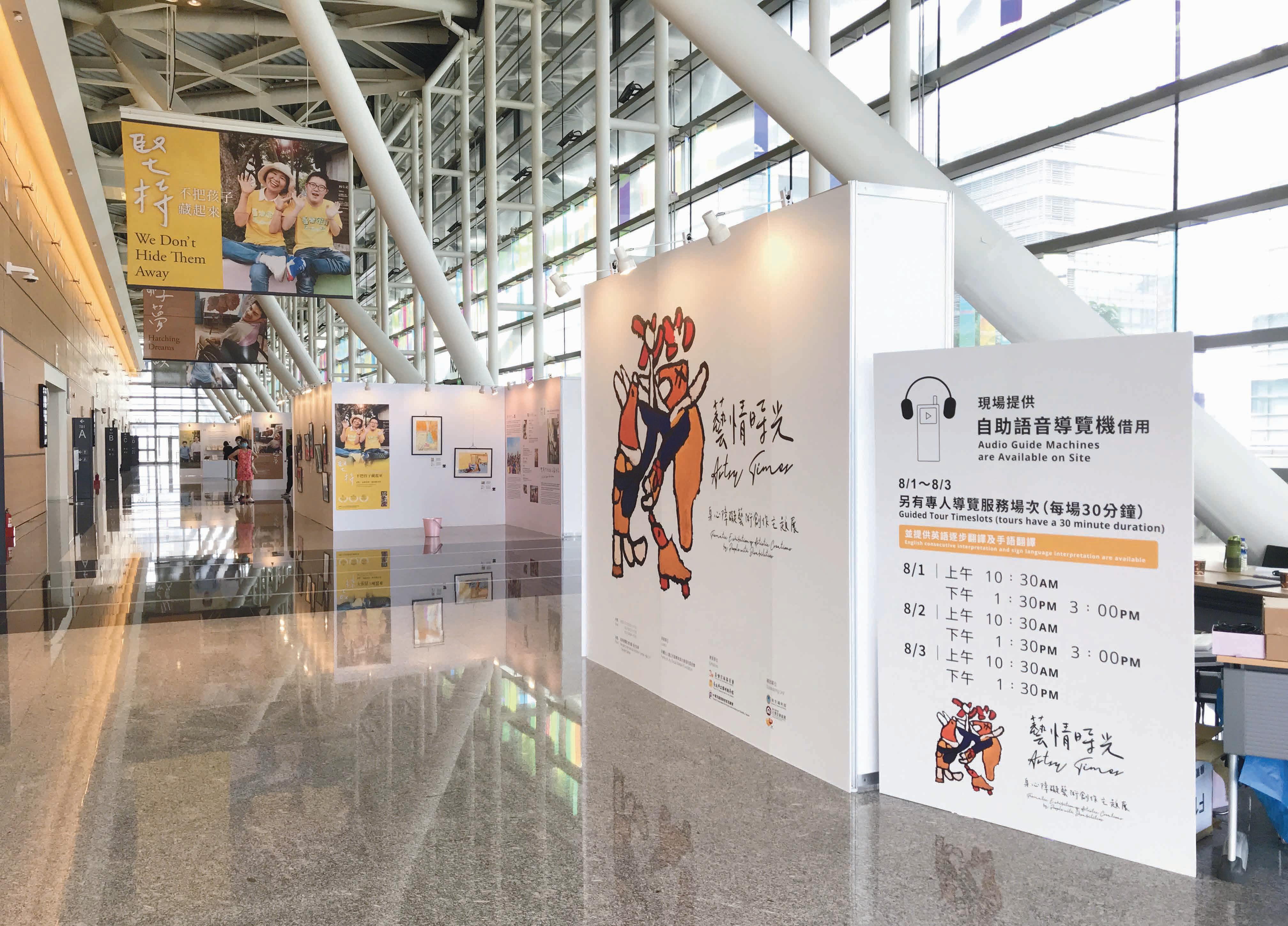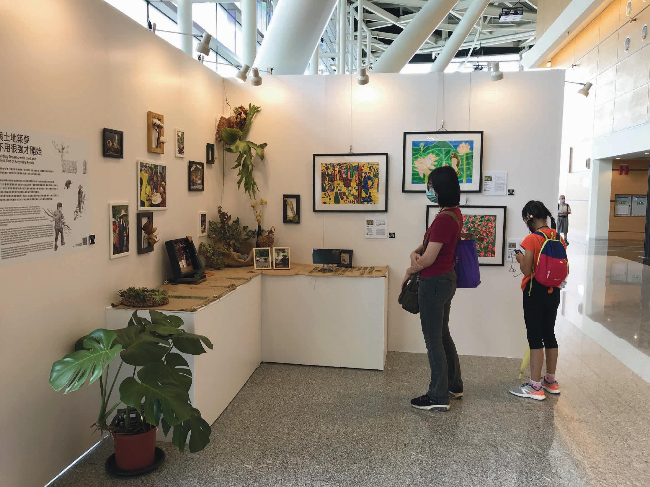 展覽有三個展區-喜樂家族、陽明教養院、智 總,此展覽由身心障礙代表團體主導,障礙 者參與的展覽,以展覽名稱「藝情時光」呼 應大疫情時代,並用「藝術創作」與「易讀」 為主軸。