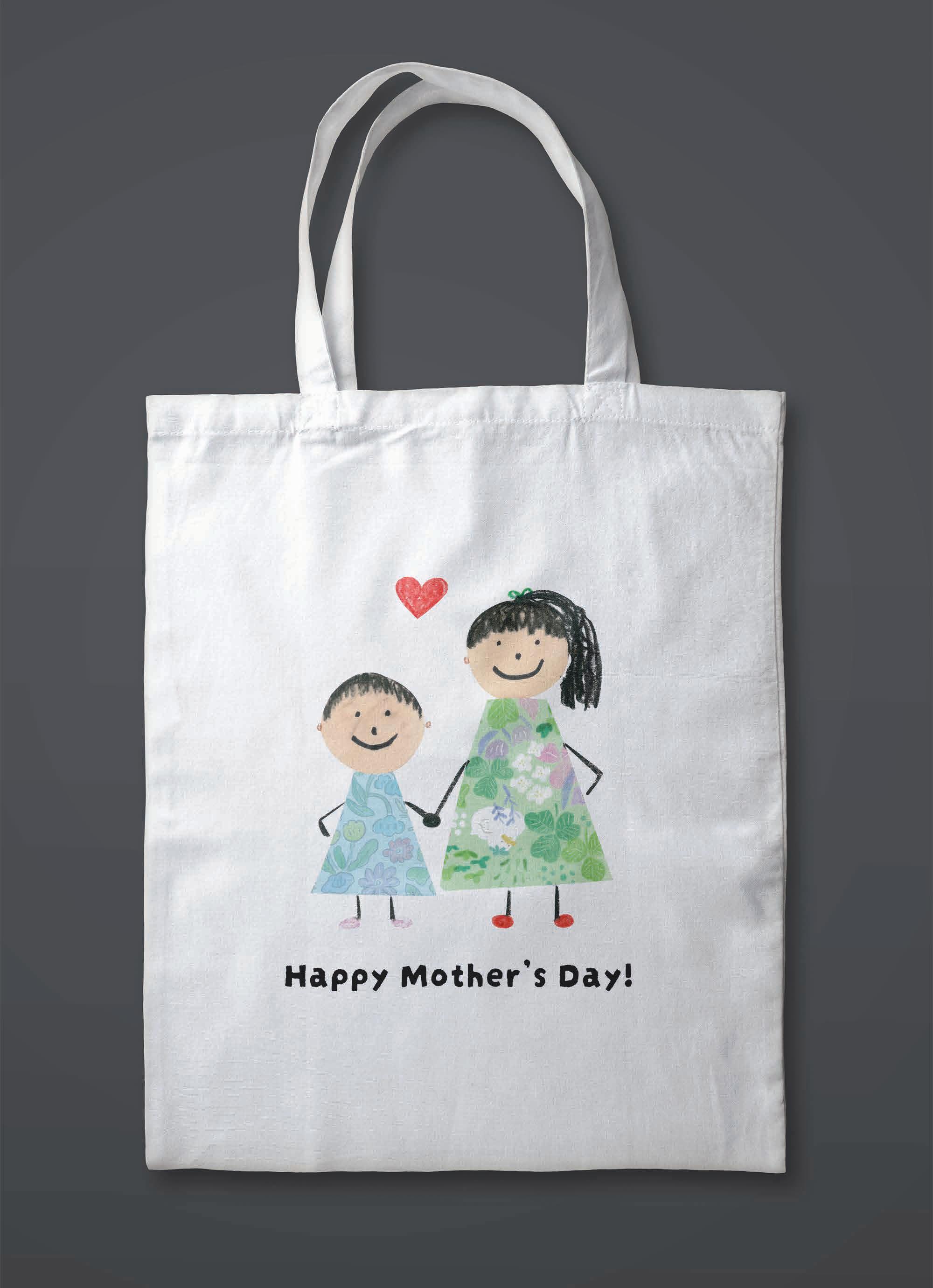 圖片為帆布袋 把孩子的作品設計成帆布袋,作為母親節禮 物送給家長。