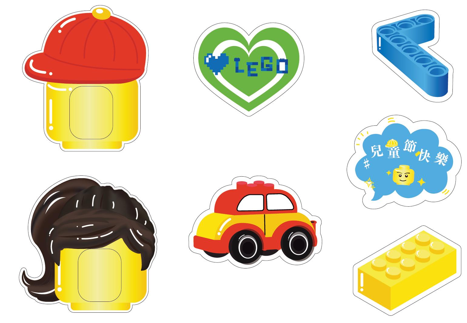 圖為為了兒童節活動設計的造型板子 以樂高人為主題設計,飽和的樂高色做搭配。 讓小朋友們在兒童節活動拿著板子打卡拍照。
