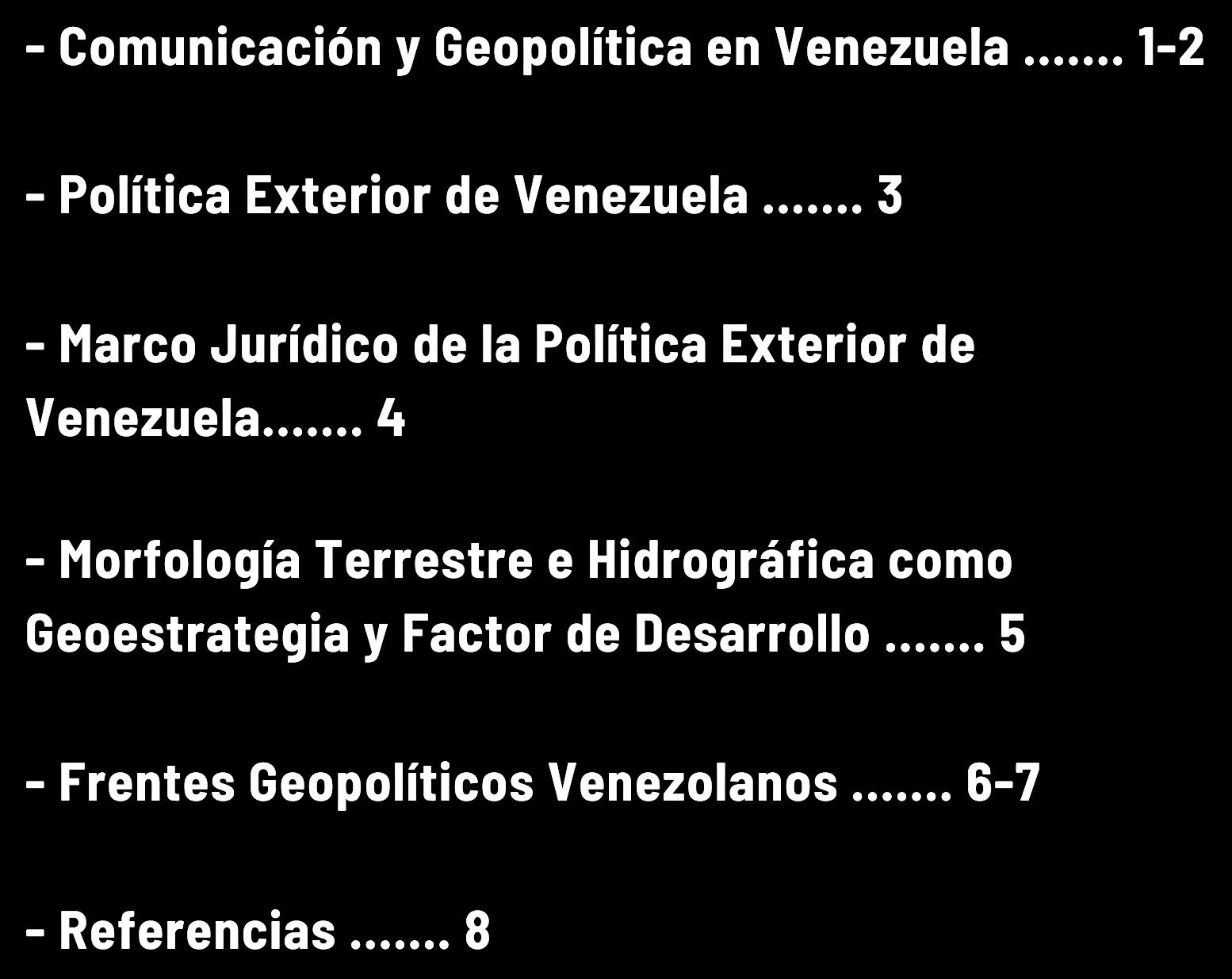 Urbaneja, DB (sin fecha). La política exterior de Venezuela (ARI) . Real Instituto Elcano. Recuperado el 17 de marzo de 2024, de https://www.realinstitutoelcano.org/analisis/la-politica-exterior-de-venezuelaari/ Venezuela: La Importancia de los Frentes Geopolíticos. (2022, December 15). Incorruptible.