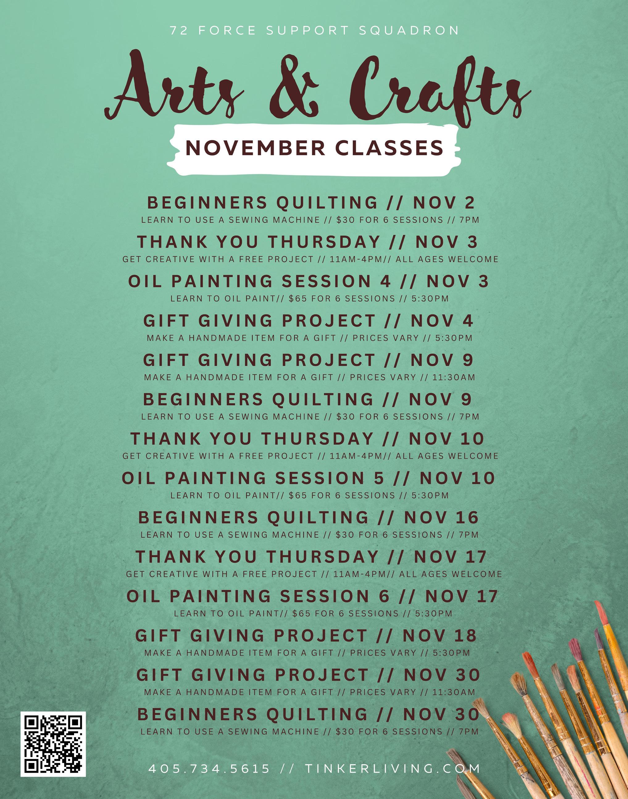 All program dates and times are subject to change. For more details visit us at www.tinkerliving.com.