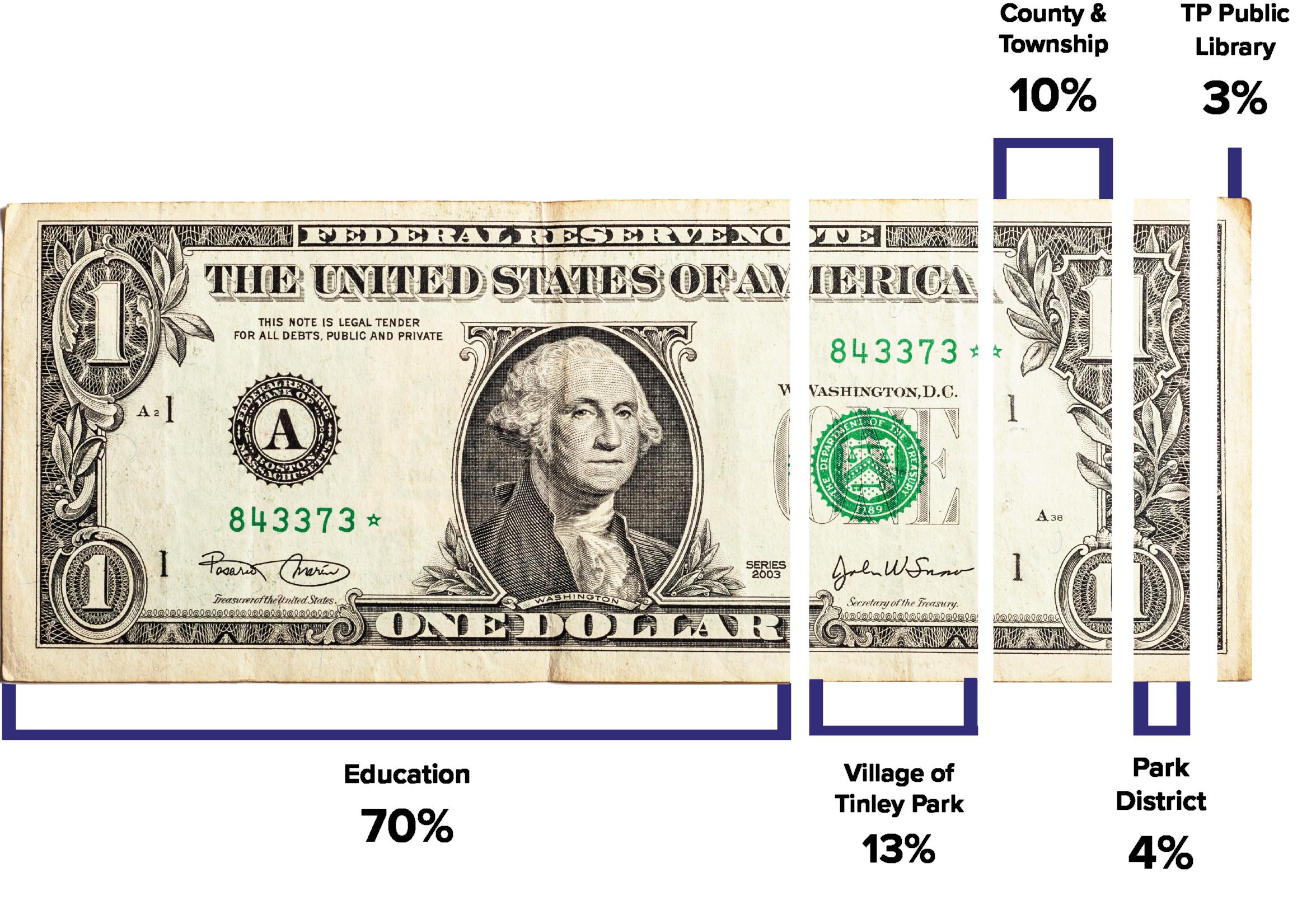 On average, 13% of your property tax bill goes to the Village of Tinley Park, 10% to your county and township, 4% to your park district, and 3% to the library. Most of your tax bill –70% on average – goes toward education, which includes local elementary and high schools, as well as community colleges.