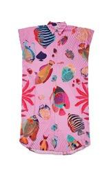 La robe Rory est une robe chemise over size, forme iconique de notre vestiaire estival, fabriquée dans une viscose douce et soyeuse, entièrement ornée de notre motif Ocean Drive où des poissons colorés ondulent Très féminine grâce à son petit col et ses manches courtes à l’emmanchure ample, elle se décline en trois couleurs et se glisse dans toutes les valises de votre été!