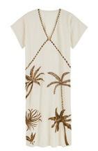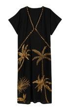 Ce thème d’exception, agrémenté de palmiers dorés somptueusement brodés, célèbre avec panache l’arrivée d’un été joyeux et coloré chez WILD La robe Evelyne incarne à merveille la pleine saison grâce à sa forme oversize qui descend jusqu’au genou et se ferme par une patte de boutonnage réhaussée d’un ravissant petit col italien