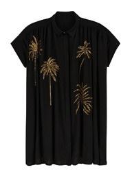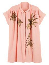 Nos premiers thèmes de la saison suggéraient l’émergence d’une tendance vers des pièces bijoux uniques et exceptionnelles Cette tendance s’affirme pleinement dans notre thème estival « palmiers » Ornée de broderies artisanales uniques, cette collection dévoile une identité forte et une féminité affirmée Arborant des motifs exceptionnels, elle annonce un été exubérant et luxueux, mettant en valeur des silhouettes sensuelles et sophistiquées Forme iconique de la saison, la robe Clovis est une robe chemise oversize confectionnée en gaze de coton entièrement rebrodée, sur le devant, de perles de rocaille dorées et gun aux motifs de palmiers exceptionnels, digne d’un travail d’orfèvre Sa féminité est accentuée par son petit col et ses manches courtes à l’emmanchure ample, tandis que les petits boutons dorés qui courent tout le long de la patte de boutonnage répondent au caractère précieux des broderies. Déclinée en quatre couleurs, blanche, rose, bleue et noire, on ne la quitte pas de l’été!