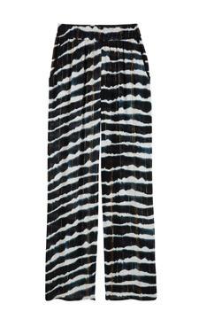 Robe ultra vaporeuse et très estivale, Aaron est confectionnée en viscose dotée d’un motif zébré, aux nuances beiges et noir carbone, évoquant l’esthétique du tie & dye, sur un tissu plissé délicatement froissé