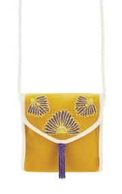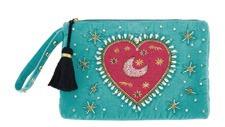 La pochette Eugénie décline notre thème Comète en une petite série de pochettes aux couleurs pêchues et aux broderies précieuses que l’on retrouve dans quatre couleurs