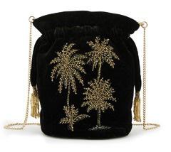 Aussi précieux et exceptionnel que le thème de prêt à porter auquel il fait écho, notre sac Aphelios est un sac seau, retravaillé autour d’une forme bourse, qui se porte en bandoulière grâce à une précieuse chaîne dorée Sur un fond en velours, se dessinent nos magnifiques palmiers, entièrement brodés de perles dorées Aphelios se ferme grâce à des cordons que l’on resserre et qui se terminent par d’exquises petites perles dorées pour parfaire ainsi le caractère iconique de cet accessoire parfait
