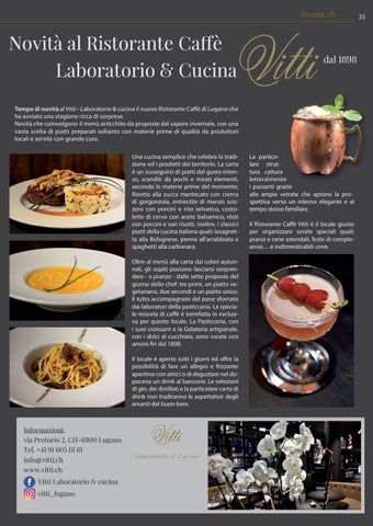 Informazioni via Pretorio 2, CH-6900 Lugano Tel. +41 91 605 61 61 info@vitti.ch www.vitti.ch Vitti Laboratorio & cucina vitti_lugano