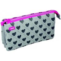 Portatodo Milan Hearts 5 compartimentos, gris y rosa 081133HE