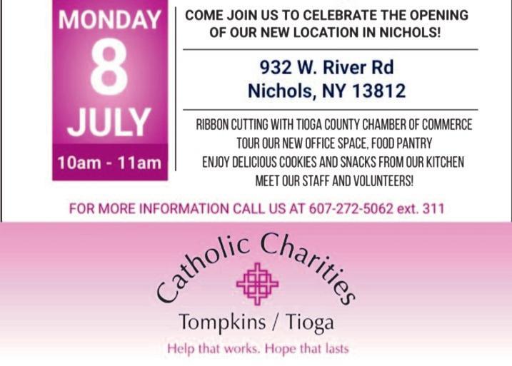 Catholic Charities of Tompkins/ Tioga (CCTT) will celebrate the opening of their new location in Tioga County with an Open House event on Monday, July 8, from 10:00 am to 11:00 am, at 932 West River Road in Nichols, NY.
