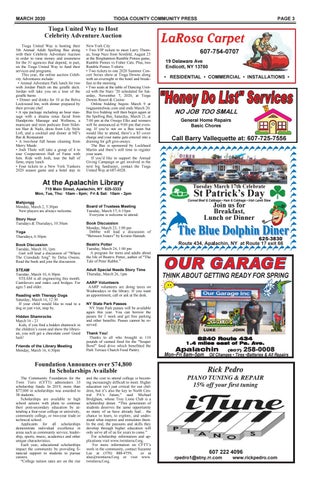 and the cost to attend college is becoming increasingly difficult to meet. Higher education isn’t just critical for our children, but it’s also the key to North Central PA’s future,” said Michael Bridgham, whose Troy Lions Club is a scholarship donor. “This generation of students deserves the same opportunity so many of us have already had… the chance to learn, to explore, and understand what inspires and stimulates them. In the end, the passions and skills they develop through higher education will only serve all of us for years to come.” For scholarship information and applications visit www.twintierscf.org. For more information on CFTT’s work in the community, contact Suzanne Lee at (570) 888-4759, or at slee@twintierscf.org or visit www. twintierscf.org.