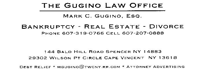 OCTOBER 2022 TIOGA COUNTY COMMUNITY PRESS PAGE 2 Serving Tioga & Broome County For over 25 years! Apalachin, NY 607 625 3131 or 607 754 2541 We bring our samples to your home or business to see in your lighting conditions. Free Consultation ~ Free Installation • Draperies • Top Treatments • Vertical Blinds • Mini Blinds • Cellular Shades • Roller Shades •All Top Brands Martin Plumbing&Heating Quality Reliable Service 3908 Waverly Road, Owego, New York 13827 607-687-1295 FURNACES BOILERS WATER HEATERS GOULDS WATER PUMPS PLUMBING FIXTURES SEWER & DRAIN CLEANING WATER CONDITIONING AIR CONDITIONING “ONTHE RUN AROUND THE CLOCK” Tioga County's COMMUNITY PRESS Volume 37 Number 10 October 2022 © 2022 Published by Brown Enterprise And Marketing 7830 State Route 434 Apalachin, New York 13732 Phone (607) 72 PRESS or (607) 727 7377 E mail: press@tiogaweb.com www.TiogaWeb.com Publisher/Editor Fred J. Brown Jr. Published monthlyRECEIVED BY MORE PEOPLE IN TIOGA COUNTY THAN ANY OTHER NEWSPAPER • The Community Press, nor its advertisers are not responsible for typographical errors in articles or ads. • Submitted articles are not guaranteed placement but are printed on a space available basis. THIS PAPER IS FREE. IT IS PAID FOR BY THE ADVERTISERS PLEASE SUPPORT THEM TELL THEM YOU SAW IT IN THE COMMUNITY PRESS www.CommunityPress.us Rick Pedro PIANO TUNING & REPAIR 15% off your first tuning 607 222 4096 rpedro1@stny.rr.com www.rickpedro.com Spencer, Van Etten and Candor Elderly Housing 1 BEDROOM UNITS NOW AVAILABLE - No Smoking ComplexGarbage Pick-up • Furnished Appliances Community Room Activities • Free Off Street Parking Electric Utility Allowance • Laundry Room Rent is based on income. Available for qualifying persons 62 years old or older or disabled of any age. 19 Orchard Street, Spencer, N. Y. 14883 Office: 607 589 4630 TDD 800 662 1220 VanDervort RepairAndRebuildService 185 Shady Hill Road,Apalachin 625 4658 PICKUPAND DELIVERYAVAILABLE Lawnmowers, Small Engines Repaired Alternators, Starters, Generators, Motors Rebuilt TIME TO GETYOUR SNOWBLOWER CHECKED OUT AND READY FOR WINTER The Campville Fire Department will hold a Pancake Breakfast