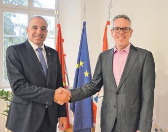 zg SICHERHEIT: BjörnGutzeit,Polizeipräsidentfür Südhessen,aufAntrittsbesuchbeiLandratChristian Engelhardt EngeZusammenarbeit zwischenKreisundPolizei TreffenimLandratsamt:LandratChristianEngelhardt(re.)empfingdenneuen PräsidentendesPolizeipräsidiumsSüdhessen,BjörnGutzeit.Foto:oh DieFiegeLogistikGmbHspendetjeweils3.000EuroanInstitutionenderRegion–unterdiesenistauchdieTafel Lampertheim. Foto:oh