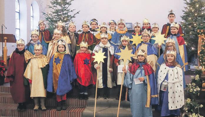 BÜRSTADT–Goldglänzten amDonnerstagdieKronenund SterneinderKircheSt.Peterin Bürstadt:ZumAussendungsgottesdiensthattensichzahlreiche jungeSternsingerversammelt, diealsHeiligeDreiKönigeKaspar, MelchiorundBalthasarindiesen TagenauchindenStraßenvon Bürstadtunterwegssind,um GottesSegenfürdasneueJahr zuverbreitenundSpendenfür benachteiligteKinderinallerWelt zusammeln.