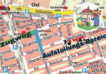 DerZugwegverläuftwieimmer,derAufstellungsbereichistwegenderBaustelle inderNibelungenstraßeindieOberschultheiß-Schremser-Straßeverlegt. Abb.:Vereins-AG