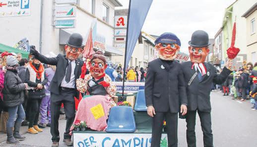 BÜRSTADT–DieHochburg derFastnachtimRiedheißt Bürstadt–undhierfindetder FastnachtsumzuginderTradition derZeitvorderCoronapandemie wiederstatt–mitüber100 Zugnummernwirdgerechnet. WährendineinigenStädtenund GemeindenderMetropolregion dieFastnachtsumzügeausfallen, wirddenBesuchernausnahund ferninderSonnenstadteinetolle Straßenfastnachtmiteinigen großenUmzugswagen,MusikgruppenundallerleiAttraktionen sowieeinemFastnachtsmarktauf demMarktplatzmitBewirtung undDJ-Musikgeboten.Vordrei Jahrensäumtennachoffizieller Schätzungetwa15.000Zuschauer denWeg.