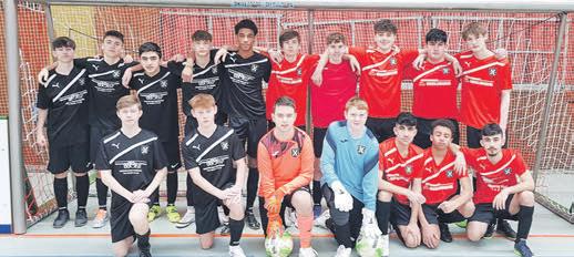 LAMPERTHEIM–DieBJugendderJSGLampertheim schlossamSonntagdenTVL-Hallen-Cupab.MitzweiMannschaftentratdieJSGandiesenTagan. InGruppeAstartetedieJSG2und musstegegenFSGBensheim,FV 08Hockenheim,VFRWormatia WormsunddieJSGHemsbachLaudenbachantreten.Imersten SpielgegenBensheimgingman frühinFührungundhatteauch dieMöglichkeit,daseinoder andereTorzuerzielen,dochder TorhütervonBensheimhatteetwas dagegen.Undalsalleschon dachtendassindsicheredrei Punkte,musstemaninderletzten Minutedas1:1hinnehmen.