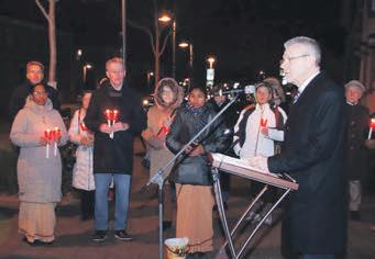 ÜberallinderRundeleuchteten Kerzen,dieMitgliederderKirchengemeindeverteilthatten. BürgermeisterStörmerbetonte, dasseswichtigsei,dieBotschaft, diePaterAlfredDelphinterlassen hat,andiesemTaginErinnerung zurufen.