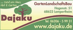 MITTWOCH,8.FEBRUAR2023 3 LOKALES DarmstädterStraße74·68647Biblis Tel.06245-7584 Porzellan•Glas•Geschenke•Hausrat•Spielwaren BiometrischePassbilder ab13,99€ Alles trocken! Allesdicht! Trockenlegungen Nasse Keller, feuchte Wände, Haussockel Taunusstraße 6 64683 Einhausen Tel. 06251 / 51275 Mobil: 0175 / 56 22 578 www.steiner-bautenschutz.de DIEKLEINE GESCHÄFTLICHE EMPFEHLUNG SiemöchtenindieserRubrikinserieren? 4WochenWerbung nur99,-€*oder mitOnlineBanner nur149,-€* *(zzgl.MwSt.) 500 m2 Ausstellungsfläche Industriestraße 20 · 68642 Bürstadt Tel. (0 62 06) 63 08 rh33sa17 Schützenstraße50·68623Lampertheim Tel.06206-94500 info@tip-suedhessen.de·www.tip-suedhessen.de