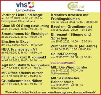 LAMPERTHEIM-DieVolkshochschuleLampertheimlädt amDonnerstag,16.Februar,um 19.30UhrzumBildvortrag „LichtundMagiederProvence“ indenSitzungssaaldesAlten Rathauses,Römerstraße104in Lampertheimein.Referentist UlrichLeist.