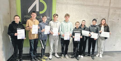 LAMPERTHEIM–Amletzten SchultagdererstenHalbjahres wurdendenerfolgreichenSchüler*innenderAlfred-Delp-Schule DELF-Zertifikateüberreichtund dieSiegerinnenundSiegerdes Mathematikwettbewerbswurden geehrt.AllererhieltenihreZertifikateundUrkunden,außerdemgabesnochkleineGeschenke.JedesJahrnehmeneinige SchülerderAlfred-Delp-Schule anDELF(diplômed’étudesen languefrançaise)teil,umauf ihremSprachniveaueinZertifikatzuerhalten.DasDELFumfasstdieStufenA1bisB2.Je nachSprachniveaukönnendie Schüler*innenfreientscheiden, welchesSprachzertifikatSie erwerbenmöchten.Einmalbe-