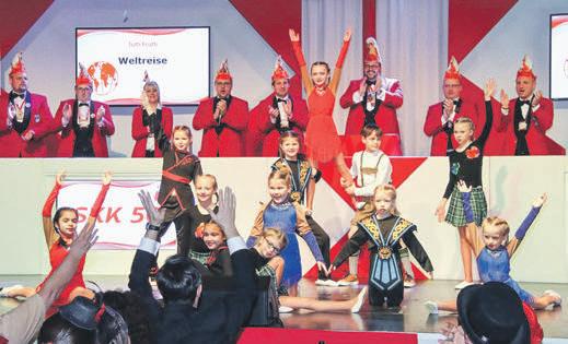 Die„Tanzperlen“ludeneinzu einerkarnevalistischenReise. ZumAbschlussliedmitMarcel KilianundTobiasMolitorgabdas KKM-OrchesterdieTonkulisse. HanneloreNowacki