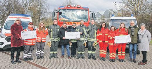 BIBLIS–AufdemParkplatz nebenderPfaffenauhallehatten dieJugendwarteundLeitungen vomJugendrotkreuz,derFreiwilligenFeuerwehrenBiblis,NordheimundWattenheimsowieder WasserretterderDLRGihre Einsatzfahrzeugedekorativplatziert.ZumFototerminamSonntagnachmittagbeiSonnenschein undfrischemWindhattendie VertreterderBürgerstiftungBiblis dreisymbolischeSpendenschecks mitjeweils700Euromitgebracht, insgesamtwaren2.100Euroan Spendengeldernzusammengekommen.ZweiSpender,dieanonymbleibenwollten,hattender Bürgerstiftungje500Eurogespendet,dieseSummehatdie Bürgerstiftungdannverdoppelt undaufgestockt.„SpendenSie–wirverdoppeln“lautetdasAngebot derBürgerstiftunganalle,diein derGroßgemeindeBiblisein