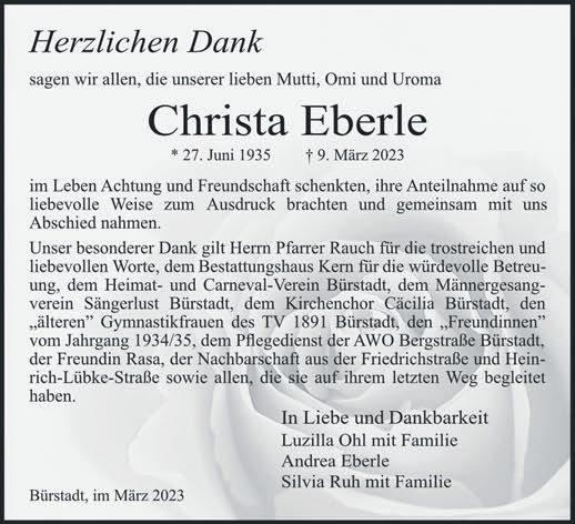 „Kinderfrühlingsfest“statt.Aus diesemGrundwerdenandiesem TagfolgendeStraßeninderZeit voncirca7.30biscirca19.30Uhr fürdenGesamtverkehrgesperrt: DarmstädterStraße–vonHeinrichstraßebisRiedstraße,Korngasse–vonFriedhofstraßebis DarmstädterStraßeundBahnhofstraße–vonDarmstädterStraße bisAnnastraße/Waldstraße.