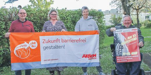 BeimProtesttagam1.MaigehtesumdiebarrierefreieGestaltunginStadtundLand.InLampertheimarbeitender VereinLebenshilfeundderBehindertenbeiratderStadtLampertheimzusammen.ImBild(vonlinks):GüntherBaus (Lebenshilfe),KoordinatorinChantalSchwarz,UlrikeGliemundJochenHalbauervomBehindertenbeirat. Foto:HanneloreNowacki