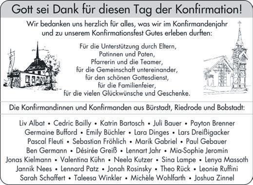 So.,28.Mai,10UhrKonfirmationsgottesdienstmitAbendmahl.
