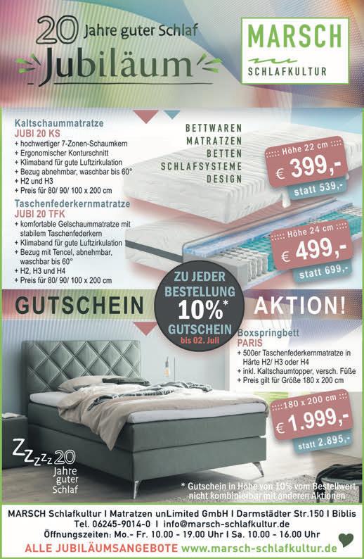 Schützenstraße50•68623Lampertheim•Tel.06206-94500•Fax06206-945010• www.tip-suedhessen.de info@tip-suedhessen.de Samstag,17.Juni2023·KW24·47.Jahrgang SÜDHESSEN DIEGRATISZEITUNGFÜRDASRIED Beilagenhinweis GmbH 23_03s