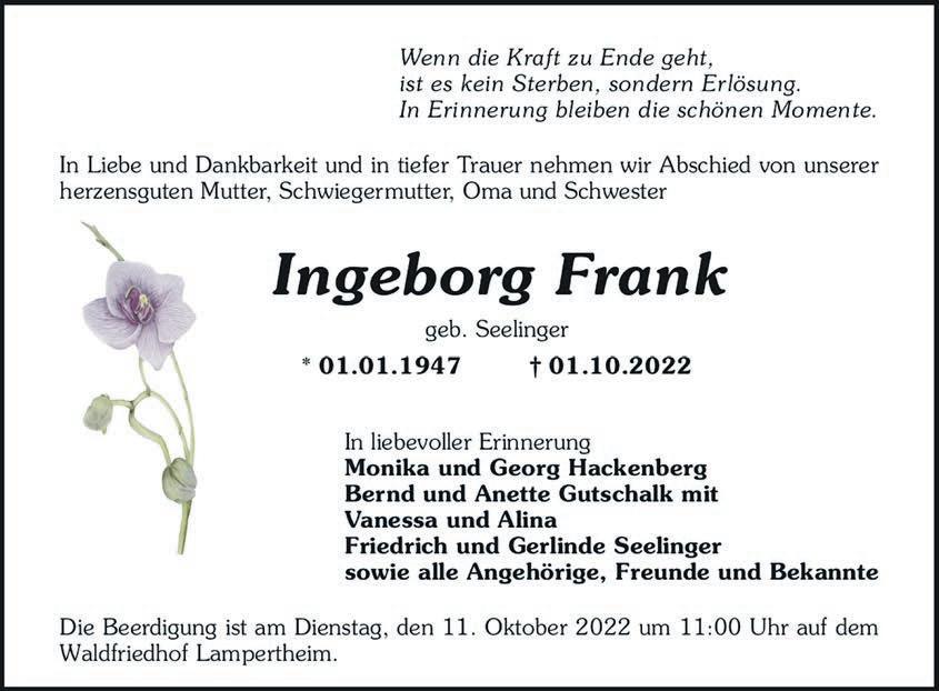 BOBSTADT–„WirfeiernErntedank undladenherzlicheinzuKaffeeund KuchenundkleinemImbissam Montag,10.Oktober,ab14.30Uhr imPfarrzentrumBobstadt”,sodas TeamdesSeniorentreffSt.Josef Bobstadt. zg
