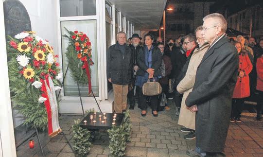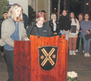 „EsisteinMomentdesInnehaltensundErinnerns,aberaucheine Warnunganunsselbst,dasswir unsweiterhinunsererVerantwortungbewusstsind“,begrüßte Störmerdiezahlreicherschienenen BürgerinnenundBürger.