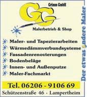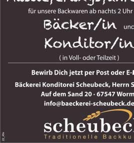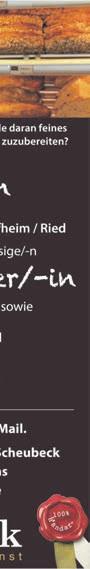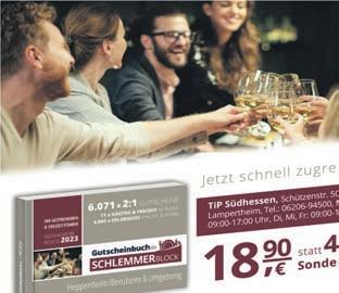Schützenstraße50•68623Lampertheim•Tel.06206-94500•Fax06206-945010• www.tip-suedhessen.de info@tip-suedhessen.deSamstag,12.November2022·KW45·46.Jahrgang SÜDHESSEN DIEGRATISZEITUNGFÜRDASRIED Jetzt einlösen bis 30.11.2022 € 50,Gutschein* 250.000x EXAKTER SEHEN B.I.G. EXACT™ –biometrisch exakte Brillengläser von Rodenstock. Biblis Bensheim Lampertheim www.optik-akustik-graetz.de * Nähere Informationen auf unserer Website RO_Optik-Graetz_BIG_Exact_Anz_94x60mm_20221013_FINAL.indd 1 13.10.22 13:40 ››Endspurt2022‹‹ SeikeineSchnecke! SichereDirzeitigDeinenTermin fürDeinBonusheft2022!DieZeitrennt! IhreZahnarztpraxismitBissDr.GerhardWeitz ZahnarztpraxisDr.GerhardWeitz Schulstraße3|68642Bürstadt Tel.:06206/79044|www.zahnarzt-dr-weitz.de •staubarmeBadsanierung •barrierefreieBäder •Enthärtungsanlagen •Kundendienst Inh.AndréSpieler·Hospitalstraße·68623Lampertheim·Tel.06206-5803850 •Heizungswartung 22_24m •Heizungsmodernisierung •Heizungsoptimierung •regenerativeEnergien HeutemitunseremSonderthema AUSBILDUNG,WEITERBILDUNG& BERUF aufdenSeiten10+11