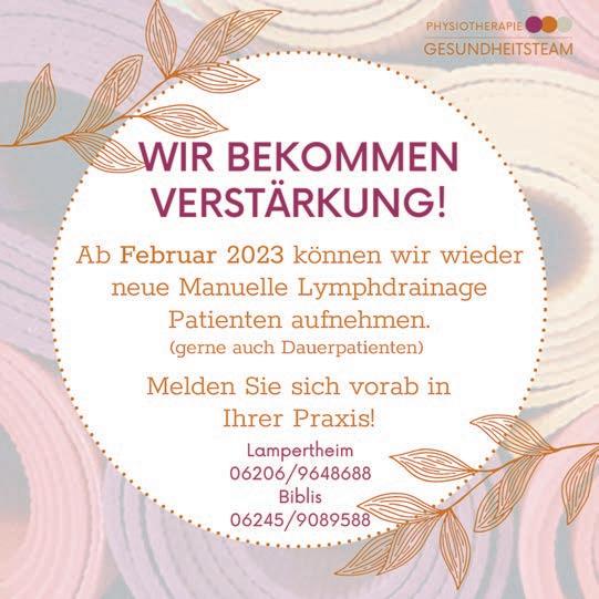 Schützenstraße50•68623Lampertheim•Tel.06206-94500•Fax06206-945010• www.tip-suedhessen.de•info@tip-suedhessen.de Samstag,19.November2022·KW46·46.Jahrgang SÜDHESSEN DIEGRATISZEITUNGFÜRDASRIED GOLDANKAUF ZU HÖCHSTPREISEN Juwelier • Kaiserstraße 5 • 68623 Lampertheim GmbH In den Weißen Aspen 2 68642 Bürstadt-Bobstadt Telefon: 06245-6245 Mail: info@holz-bluem.de Wilhelm Blüm –Holzhandlung GmbH www.holz-bluem.de Besuchen Sie unsere Ausstellung! Böden Türen Terrassen Decken / Wand Bauholz TagderoffenenTür WirladenSieherzlichein,unserenneuen MilonQ Kraft-Ausdauerzirkelkennenzulernen! Samstag,den26.11.22,von11-14Uhr ✔Ab11UhrTestenSieIhreMuskelkraftFunktionsanalyseandenneuenGeräten unterNutzungvonMilonYou ✔12UhrInfo-Vortrag: