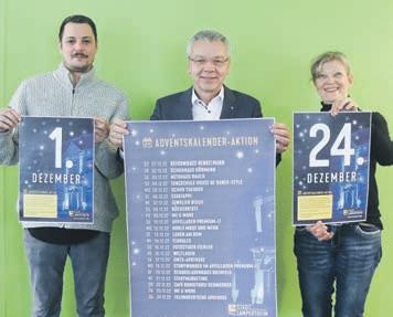 STADTMARKETING: FlyerbündeltvielfältigeVeranstaltungen/LampertheimwirddurchEinzelhandelzugroßem Adventskalender AdventszeitinLampertheimstimmt aufWeihnachtenein GEMEINDEVERTRETUNGBIBLIS: BürgermeisterScheibbrachtegenehmigungsfähigenHaushaltein KeineSteuererhöhungen,aberDefizitausgleich FreuensichaufeinebesinnlicheVorweihnachtszeitunddassLampertheimzu einemgroßenAdventskalenderwird:BürgermeisterGottfriedStörmer(Mitte), AlexandraAdam(Stadtmarketing;r.)undWirtschaftsfördererMichaelSchmitt(l.). Foto:BenjaminKloos FortsetzungaufSeite2 NachderEinbringungdesHaushalts2023werdendieZahlenindenFraktionen unterdieLupegenommen. HanneloreNowacki FortsetzungaufSeite5