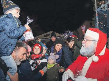 „DasistdieschönsteZeitim Jahr“,verkündetdasLied.Beim Adventliedbekamenesdie Zuschauerauchschriftlichauf Buchstabentafeln:Wirhaben „ADVENT“.BürgermeisterGottfriedStörmerundSpargelkönigin StellaSvenjaI.begrüßtendie erwartungsvolleZuschauerrunde, dannwaressoweit:EinÜberraschungsgastkündigtesichmit lau-temKlopfenan,ausder schwerenHolztüretratder NikolausmitgroßemGeschenkesack.ZuerstpacktederNikolaus aliasOttoEdingerdieGeschenketütenfürdieChorkinderaus,zu guterLetztwarauchnochfür weitereKinderetwasimSack. NachderzweijährigenPausewegen derCorona-Pandemiehattensich dieVereinewiederaufden Ansturmmitvielenhungrigen unddurstigenGästenvorbereitet.