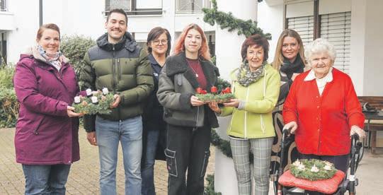 DasTeamdesJugendhausüberreichtedurchKindergestalteteAdventskränzeandasSeniorenwohnheim,dieStadtverwaltung unddasQuartiersbüro.