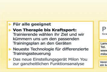 WELLNESS,SCHÖNHEIT&GESUNDHEIT 10 MITTWOCH,30.NOVEMBER2022 OPC–dieFormelgegen oxidativenHautstress InstitutfürSchönheit&Hautgesundheit–bestePflegefüreingutesHautgefühl Füralle,dieesmitdemAlternnichteilighaben Anzeige Investition indieGesundheit MilonQ unserneuer Kraft-Ausdauer-Zirkel NEU KOSMETIK PLISCHEK I STEFANIE PLISCHEK Bismarckstraße 49 I 68623 Lampertheim I (06206) 155269 I www.kosmetik-plischek.de ZEIT FÜR „NEEDLING“ Genießen Sie unsere schonende, nicht-invasive Anti-Aging Behandlung inkl. 7 Tage Ampullenkur für zu Hause 149,- €* statt 189,- € *Coupon einmal pro Person einlösbar, gültig bis 31.12.2022 ZEIT DICH INSTITUT FÜR DERMAKOSMETIK Let it snow, let it glow … REVIDERMAdventskalender 24Türchen+8Highlights=1Lächeln EinedlesGeschenk,fürsichselbstoderzumVerschenken. FürjedenHautypgeeignet.ZumAktionspreisvon 89,-Euro (Ersparnisvon50%gegenüberEinzelkauf) Bis24.Dezember2022: 10 % Rabattaufalles (außerBehandlungen,GutscheineundAdventskalender) ©REVIDERM Auchmit Online-Shop! ar.48mi22