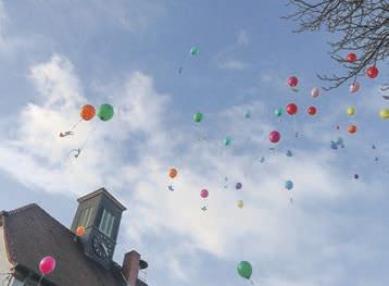 Symbolischstiegendarüber hinausbunteLuftballons,andenen kleineFriedenstaubenausPapier hingen,indenHimmelauf,um dieBotschaftdesFriedensunddes KinderrechtesaufAufwachsenin Friedenweiterzuverbreiten.Alle, dieeinenLuftballonfindenund zurückschicken,erhalteneine großeFriedenstaubealsDank.Und auchineinemBaumvordemAlten Rathausfindensichzahlreiche Tauben–diesewurdenunter anderemauchimRahmender