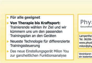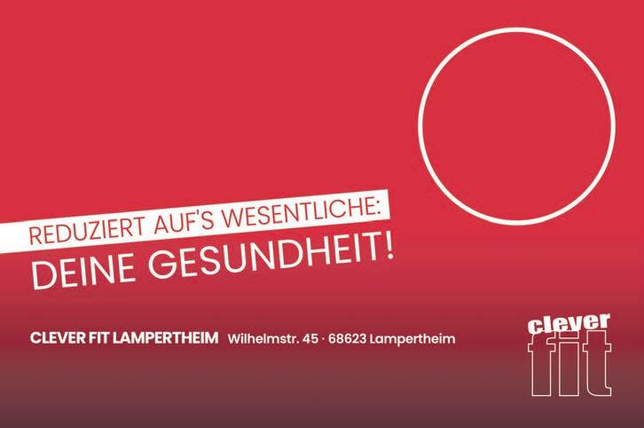 LOKALES 7 MITTWOCH,30.NOVEMBER2022 NurnochbisSonntag,04 .12 .2 2 ! ALL-INFÜR29,90€/MONAT(STATTREGULÄR 39,90€/MONAT) INKL.SOLARIUM, MASSARIUM,KURSE, GETRÄNKE,POWERPLATE U.V.M. *GültigfürNeuanmeldungenbiseinschließlich04.12.2022,beiAbschlusseinerMitgliedschaftübermindestens12Monate.Anschließend WechselzumNormaltarifvon39,90€proMonat.Zzgl.einmaligerAnmeldegebührinHöhevon59,90€.BeieinerMindestvertragslaufzeit von12MonatenundmonatlicherVorauszahlungbeläuftsichderJahresgesamtbetragauf418,70€(inkl.MwSt.).KündigungsfristeinMonat zumMitgliedschaftsende.EinAngebotdercfFitnessLampertheim,Wilhelmstr.45,68623Lampertheim. BISSAMSTAG,24.DEZEMBER2022GENÜGEND